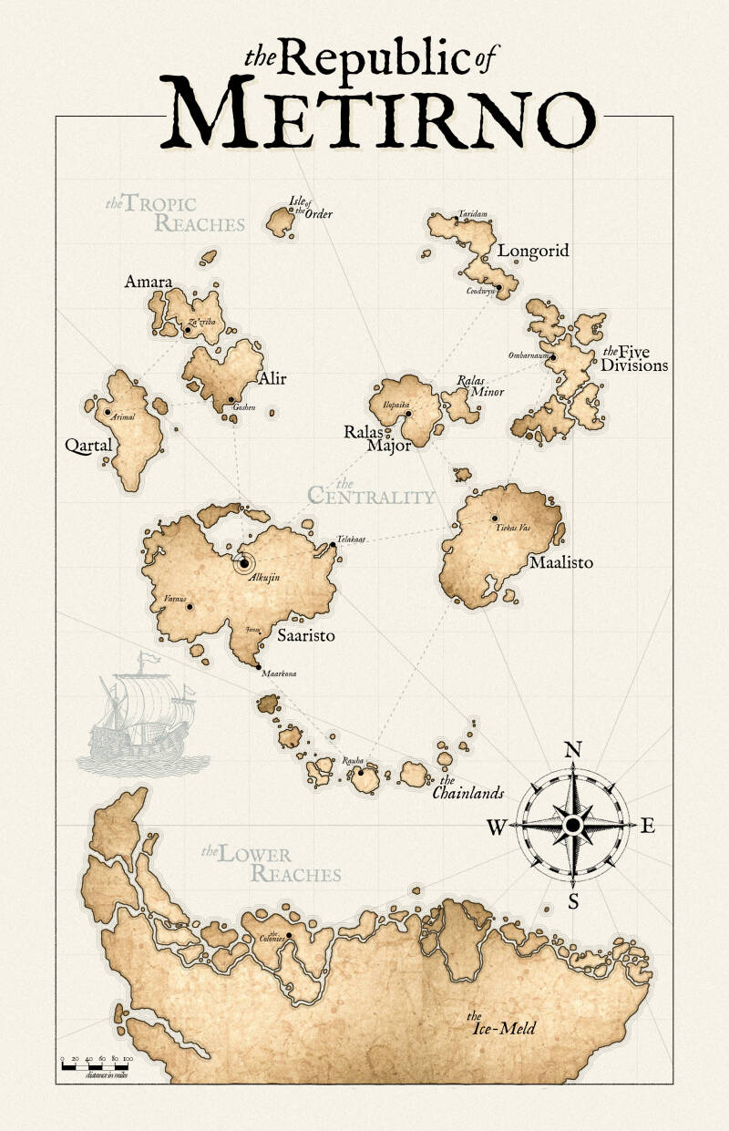 My current project is a five-book collection that takes place in an archipelago-nation called The Republic of Metirno.
